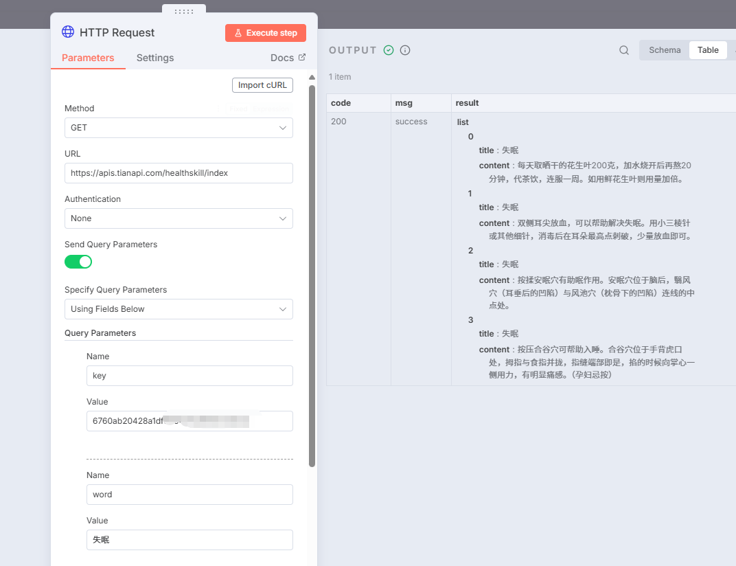 curl -G "https://apis.tianapi.com/healthskill/index" --data-urlencode "key=【676XXXX 替换自己的】" --data-urlencode "word=失眠"