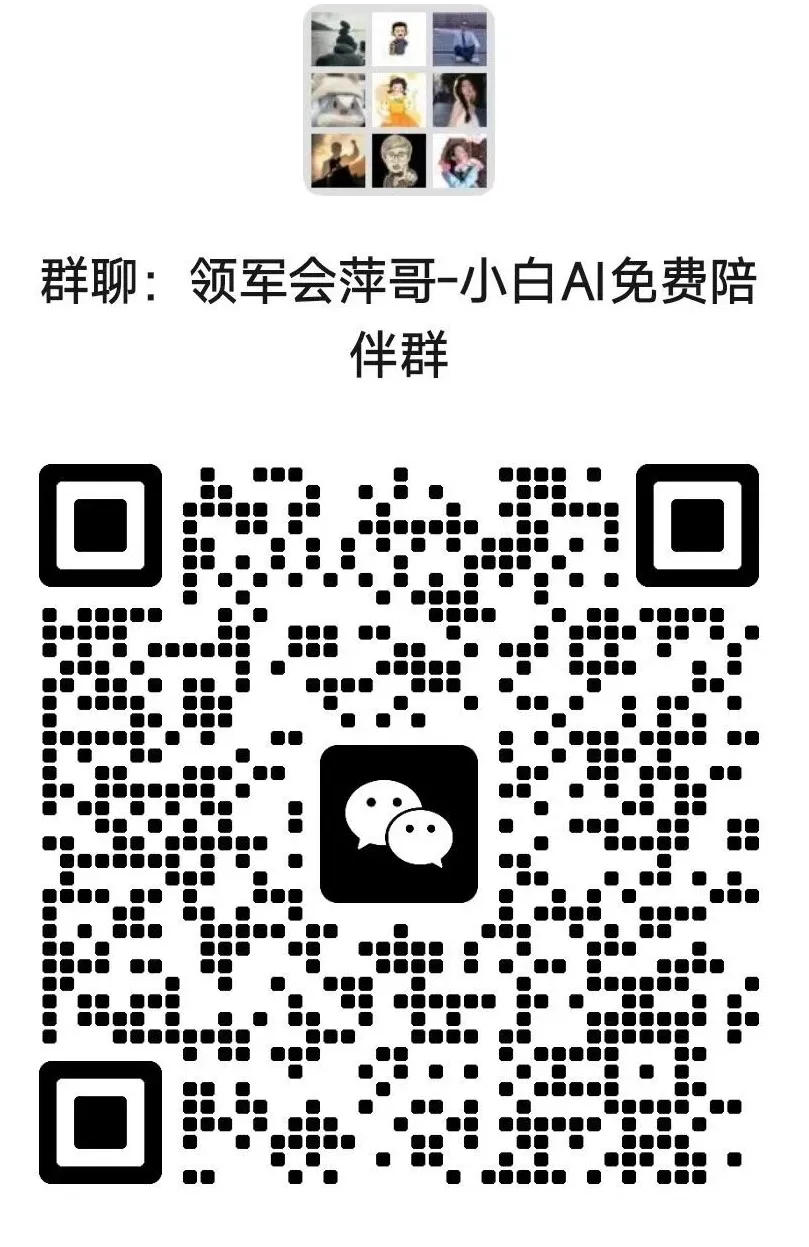 领军会萍哥-小白AI免费陪伴群,【如果过期了,可以加最下面的微信拉你进群,记得备注:小白AI 才可以通过哦】